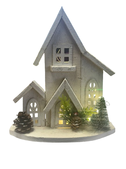 MAISON EN BOIS BLANC H 27CM LED