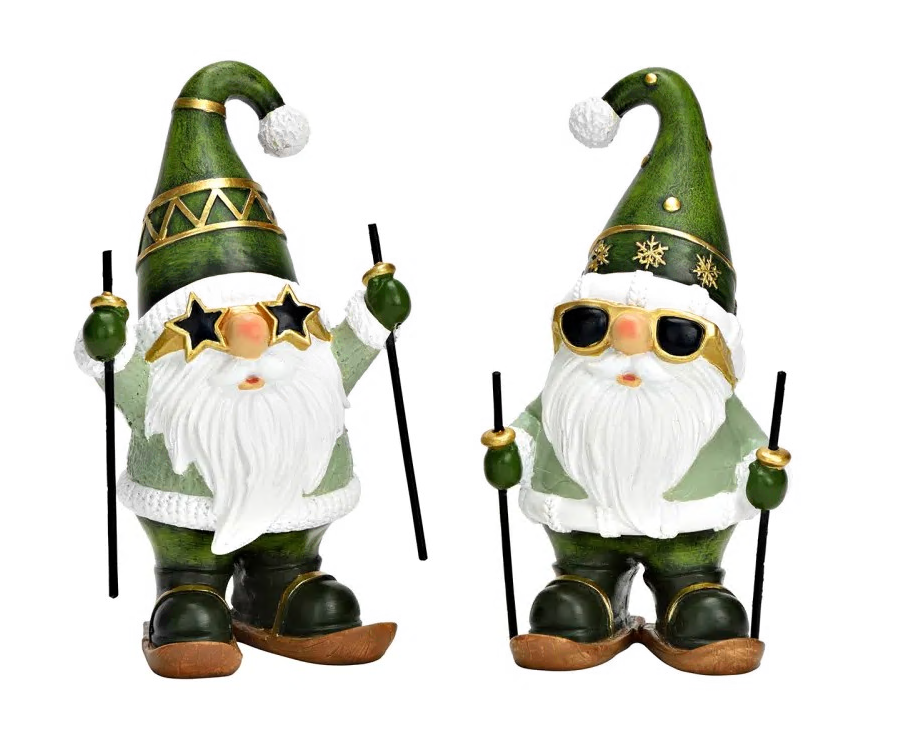 PERE NOEL EN CERAMIQUE SUR SKIS VERT 10X18X8CM (1 PIECE)